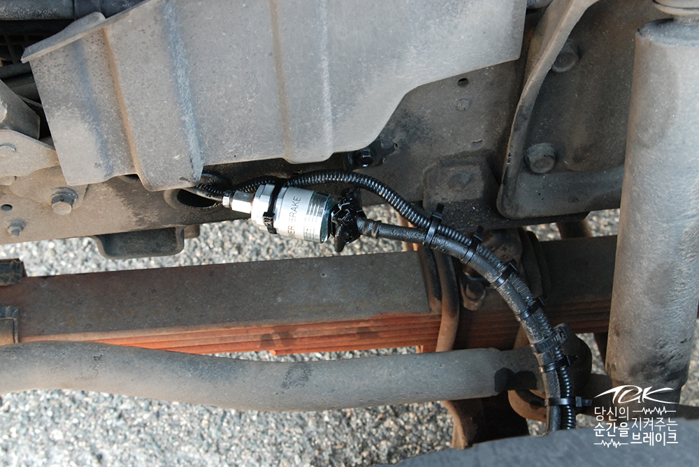 3.5톤 차량과 마찬가지로 브레이크 파이프와 브레이크 호스 사이에 파워브레이크를 장착합니다.