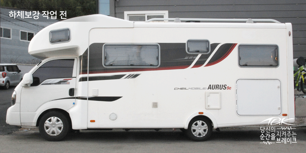 봉고3 베이스의 제일모빌 아우러스 AURUS 9e 캠핑카가 하체보강과 제동력 개선을 위해 입고되었습니다.