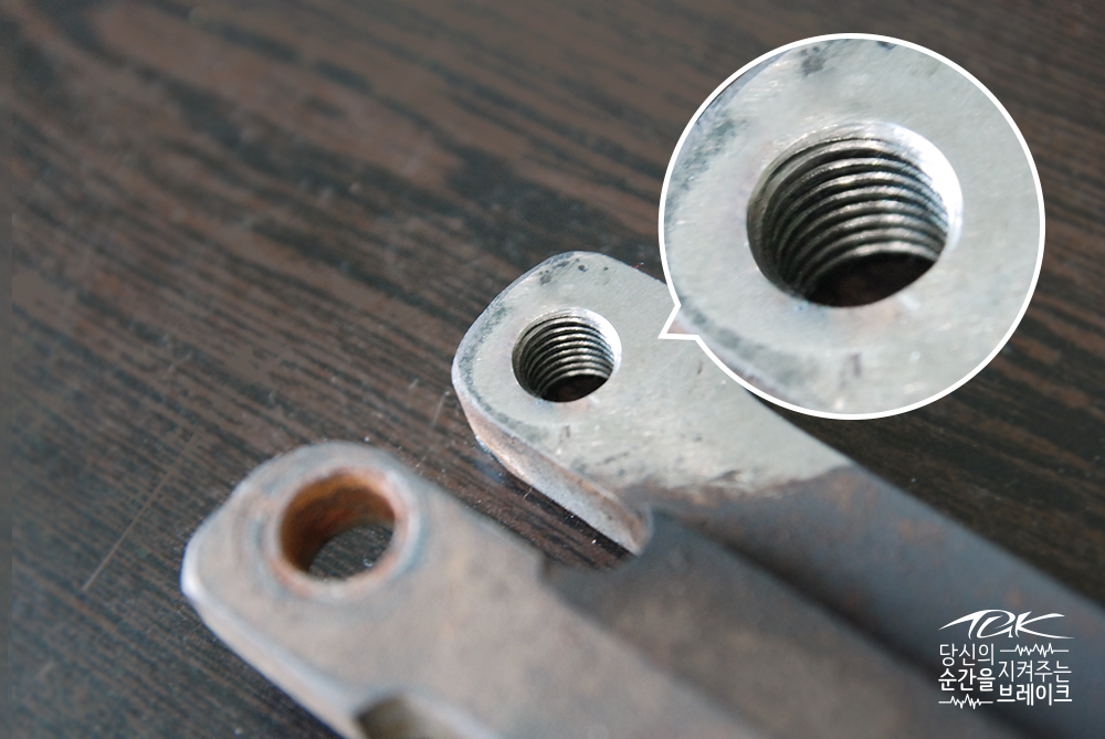 브레이크 브라켓의 나사산이 무너진 문제로 나사산을 다시 살려야 했어요.