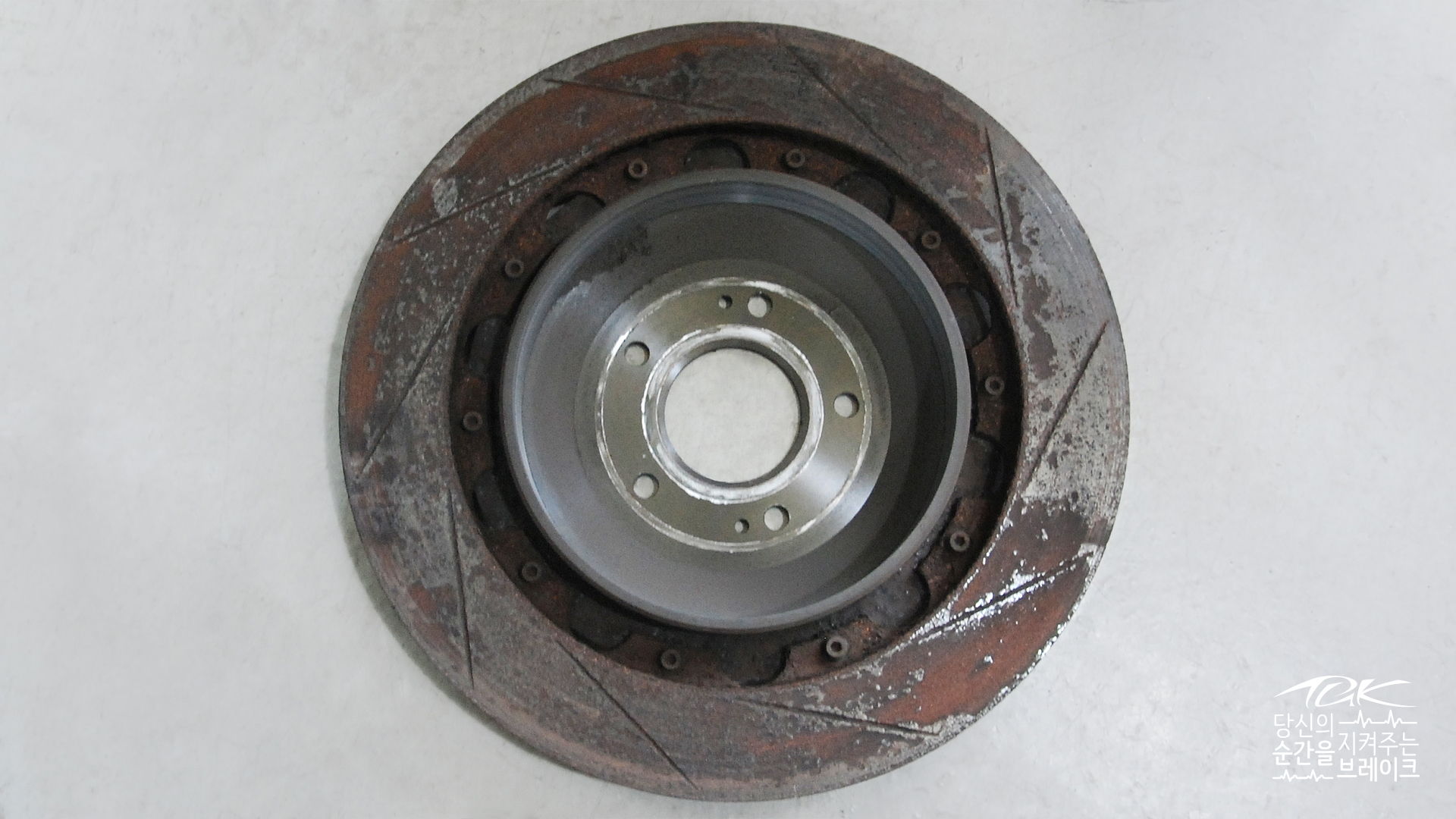 디스크 연마를 해 보니 열꽃이 피거나 열을 받은 부분은 없어서, 교체하지 않고 연마만 해서 사용할 수 있었습니다.