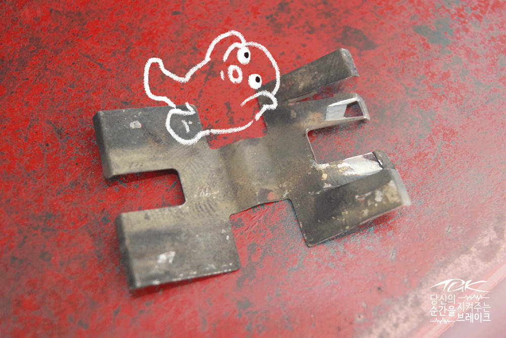 패드를 밑으로 내려주는 스프링을 이상하게 컷팅하여 디스크와 간섭이 있었던 것이었습니다.